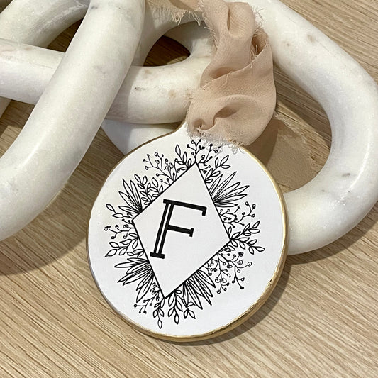 Ceramic Floral Initial Ornament - Double-Sided with Name and Year