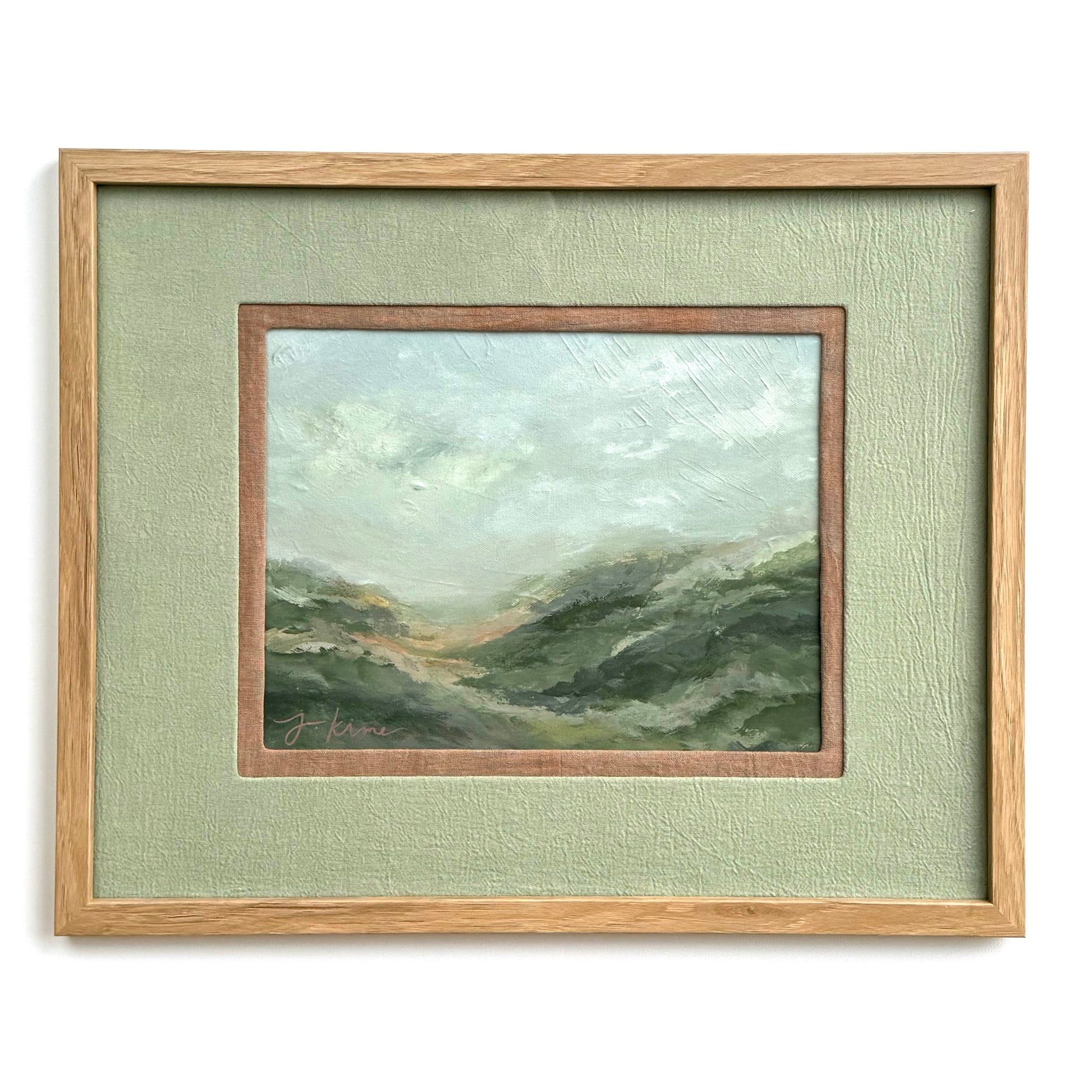 These one-of-a-kind pieces have been a slow labor of love. From an idea, to the unhurried collection of frames one at a time, to the intentional grouping of textures and colors, and the thousands of brushstrokes turning loose canvas or paper into intricate landscapes—each step was its own part of the journey. This collection combines old and new, some frames antique with their own history, and some new and prudently aged to match the mood of the art.